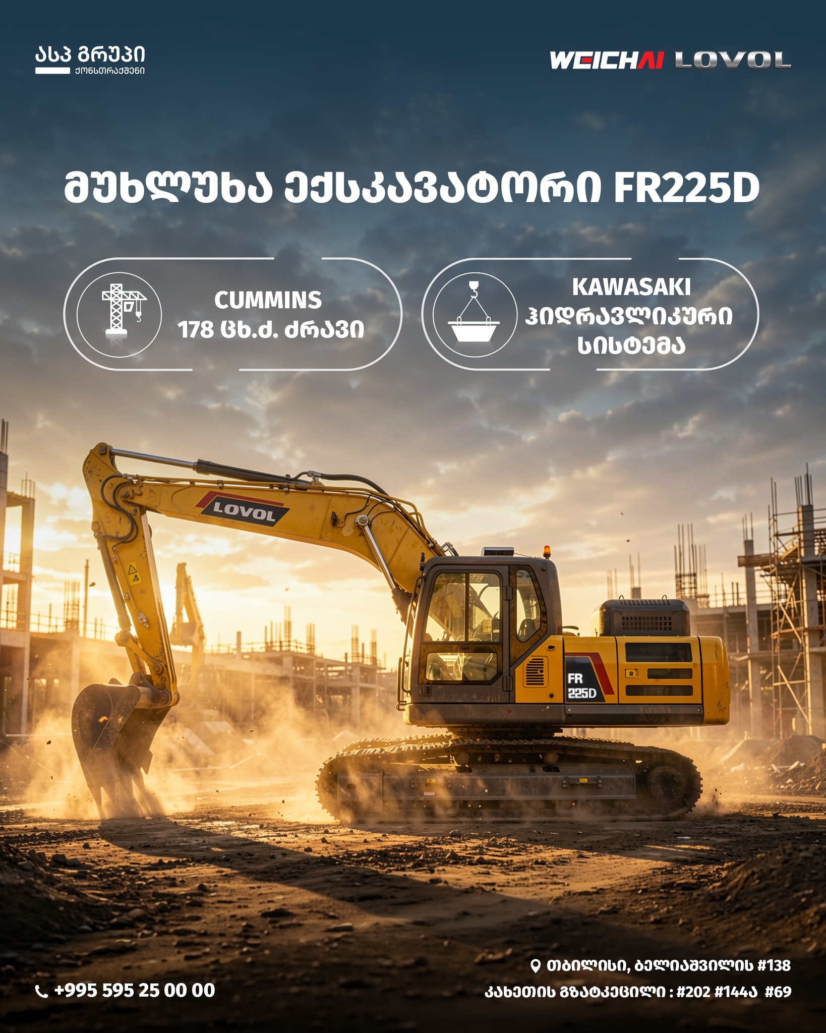გაზარდეთ თქვენი სამუშაოების ტემპი და შეამცირეთ დანახარჯები Lovol-ის ექსკავატორით — FR225D არის საინვესტიციო არჩევანი, რომელიც საგზაო სამუშაოებს გაცილებით მარტივს და მომგებიანს ხდის.